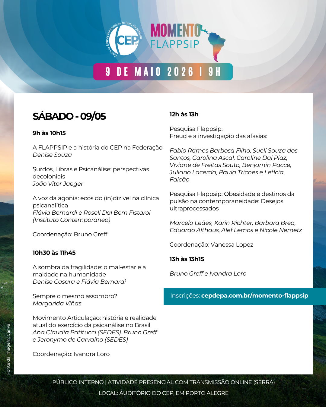 PRÓXIMOS EVENTOS Público Interno INSCRIÇÕES ABERTAS Aberto ao público INSCRIÇÕES ABERTAS Aberto ao público INSCRIÇÕES ABERTAS Aberto ao público INSCRIÇÕES EM BREVE Porto Alegre Rua Ramiro Barcelos, 710Moinhos de Vento, Porto Alegre/RS – 90560-032Fone: (51) 3222-3900 / WhatsApp: (51) 98524-0638 SEG - SEX 08h às 21h SÁB Fechado Caxias do Sul Rua Sinimbu, 973Nossa Senhora de Lourdes – Caxias do Sul/RS – 95020-510Fone: (54) 3223-3209 / WhatsApp: (54) 98416-6397 SEG - QUI 08h às 20h30 SEX 08h às 19h SÁB 08h30 às 12h30